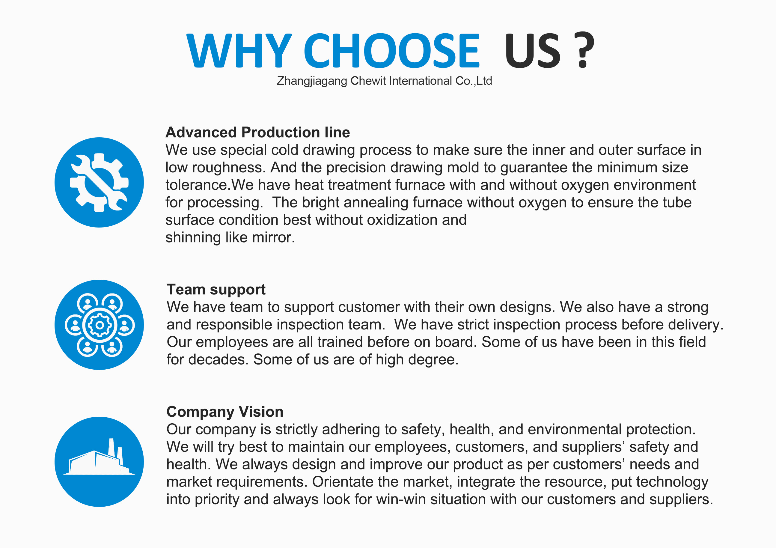 주요 제품:강관, 원활한 파이프, 유압 오일 튜브, 정밀 튜브, 스테인레스 스틸 튜브